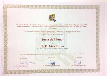 Honorific Award/Distinción Honorífica otorgada por Grupo Comunicar en España y Latino América
