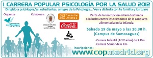 La carrera resultará en un atractivo recorrido por el Campus de Somosaguas, y se dirige tanto a psicólogos y psicólogas, estudiantes de Psicología y amigos de la Psicología como a todos sus familiares. Parte del importe de la inscripción de esta carrera estará destinado a la lucha contra los trastornos de la conducta alimentaria en la infancia. Habrá dos tipos de carreras. La primera se dedica a los más pequeños, podrán participar niños y niñas de entre 7 y 12 años de edad, su recorrido será de 2 km y comenzará a las 10.30 horas. Una segunda carrera está dirigida a los adultos, tanto en categoría masculina como femenina, tendrá un recorrido aproximado de 6 km, y comenzará a partir de las 11 horas. Los tres primeros clasificados de cada categoría recibirán sendos trofeos y todos los inscritos recibirán una bolsa de corredor con dorsal, camiseta oficial de la carrera y diversos regalos. Además cada uno de los corredores recibirá, al finalizar la carrera, un diploma personalizado de su participación. Para que pueda disfrutar toda la familia y los que acudan con sus hijos puedan correr o acompañar a sus familiares, la organización ha habilitado una zona infantil atendida por monitores de tiempo libre donde se realizarán juegos y talleres que harán disfrutar a los más pequeños. Los corredores que participen de la carrera a parte de disfrutar de una zona de avituallamiento, podrán disfrutar también de una zona de masaje antes y después de la carrera. Para realizar las inscripciones a la carrera:http://eventos.copmadrid.es/ |