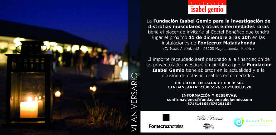 Todavía estás a tiempo para conseguir tu invitación y acudir al Cóctel Benéfico que este año ha organizado la Fundación Isabel Gemio para la investigación de las distrofias musculares y otras enfermedades raras.